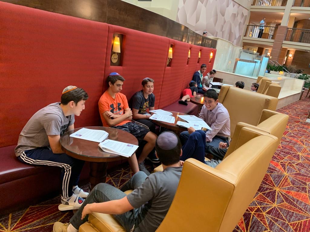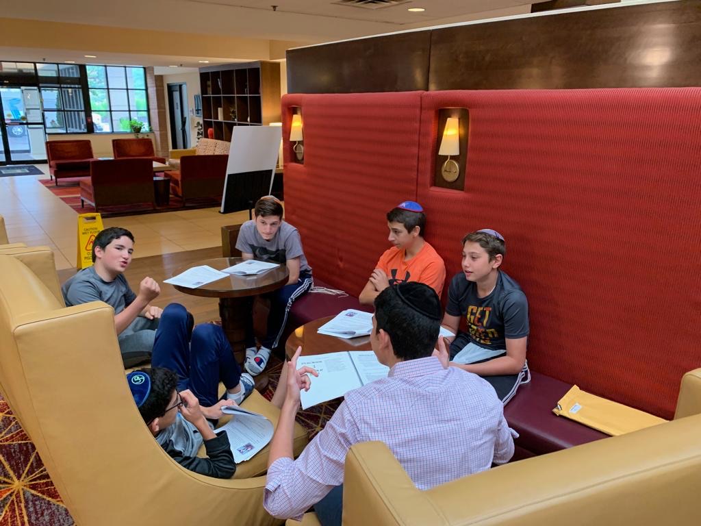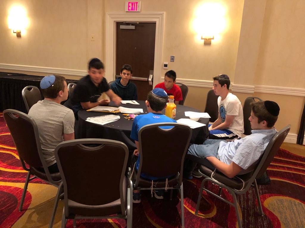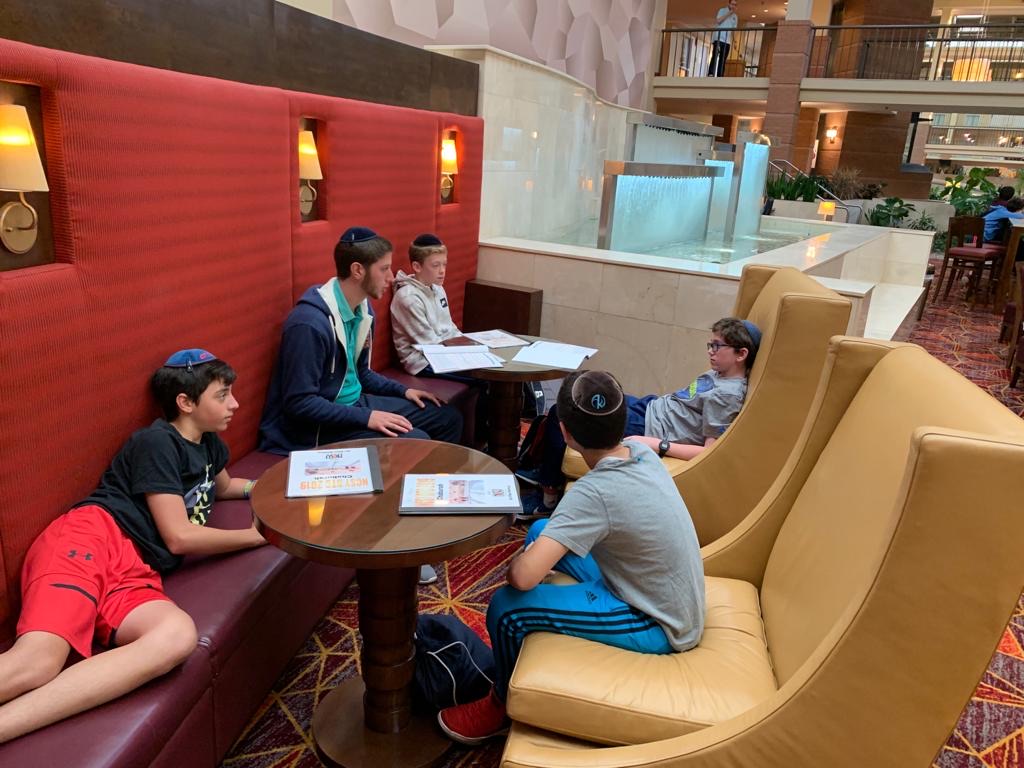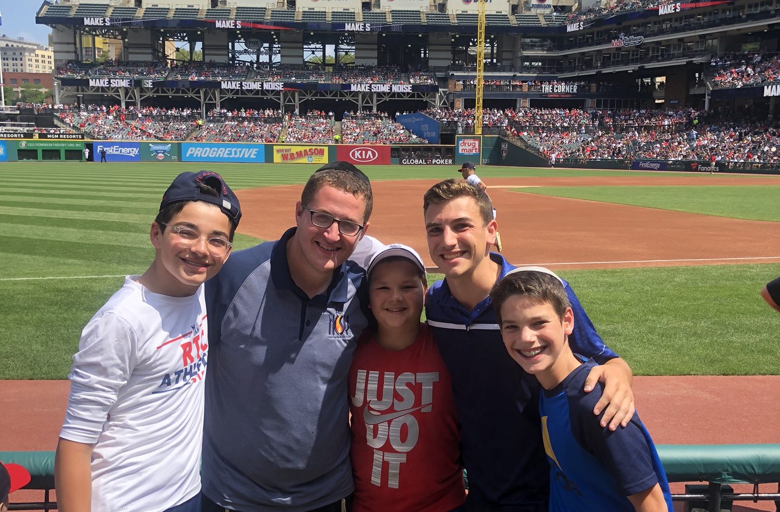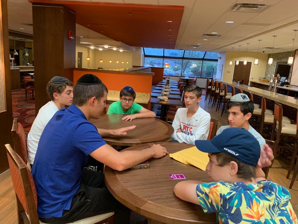 Today started off with Shacharis, featuring a d’var halacha from Rabbi Marcus, a scrumptious breakfast (waffles, bagels, and cereal), and then an exciting chabura-shiur combination. After a delicious mac and cheese lunch, we traveled to Progressive Field for an intense matchup between the Indians and the Red Sox. After the game, we headed to Dave and Busters (including unlimited soda and water!) and then The Multiplex Sports Facility for a fun afternoon of arcade games and sports leagues. When we got back to the hotel after a fun-filled day, we heard a riveting mussar schmooze from Rabbi Marcus before Davening Maariv. We can’t wait for another jam-packed day tomorrow!