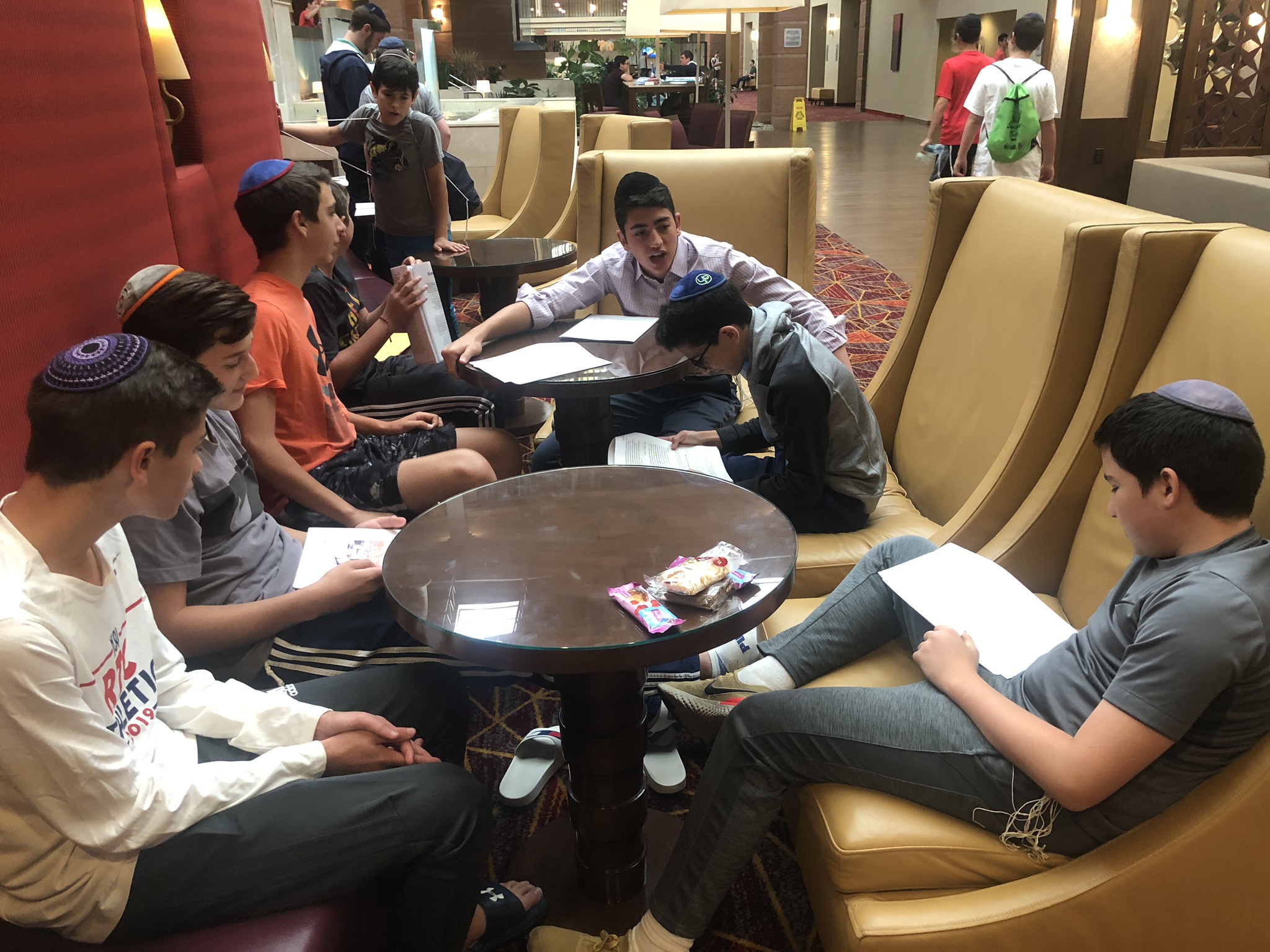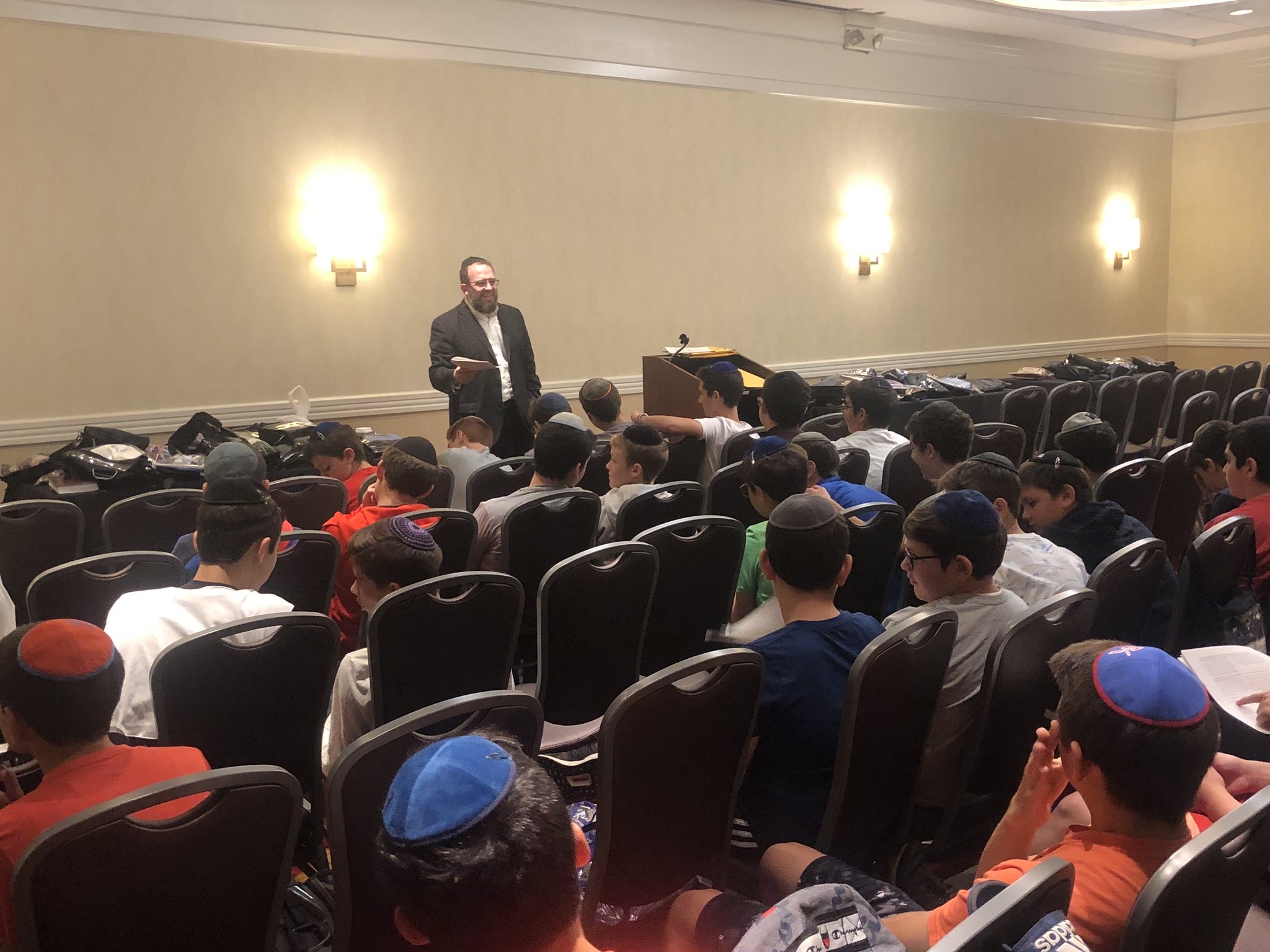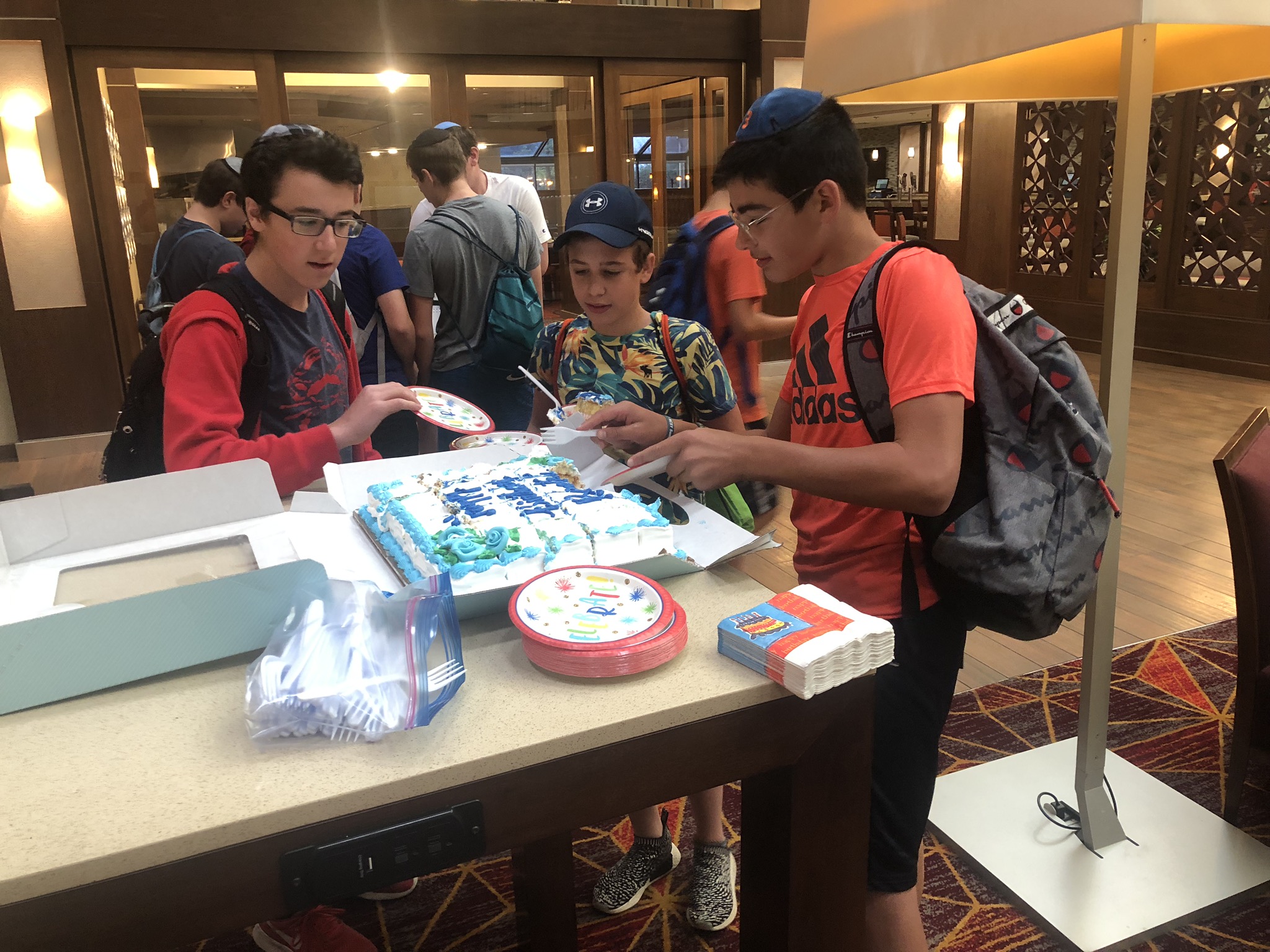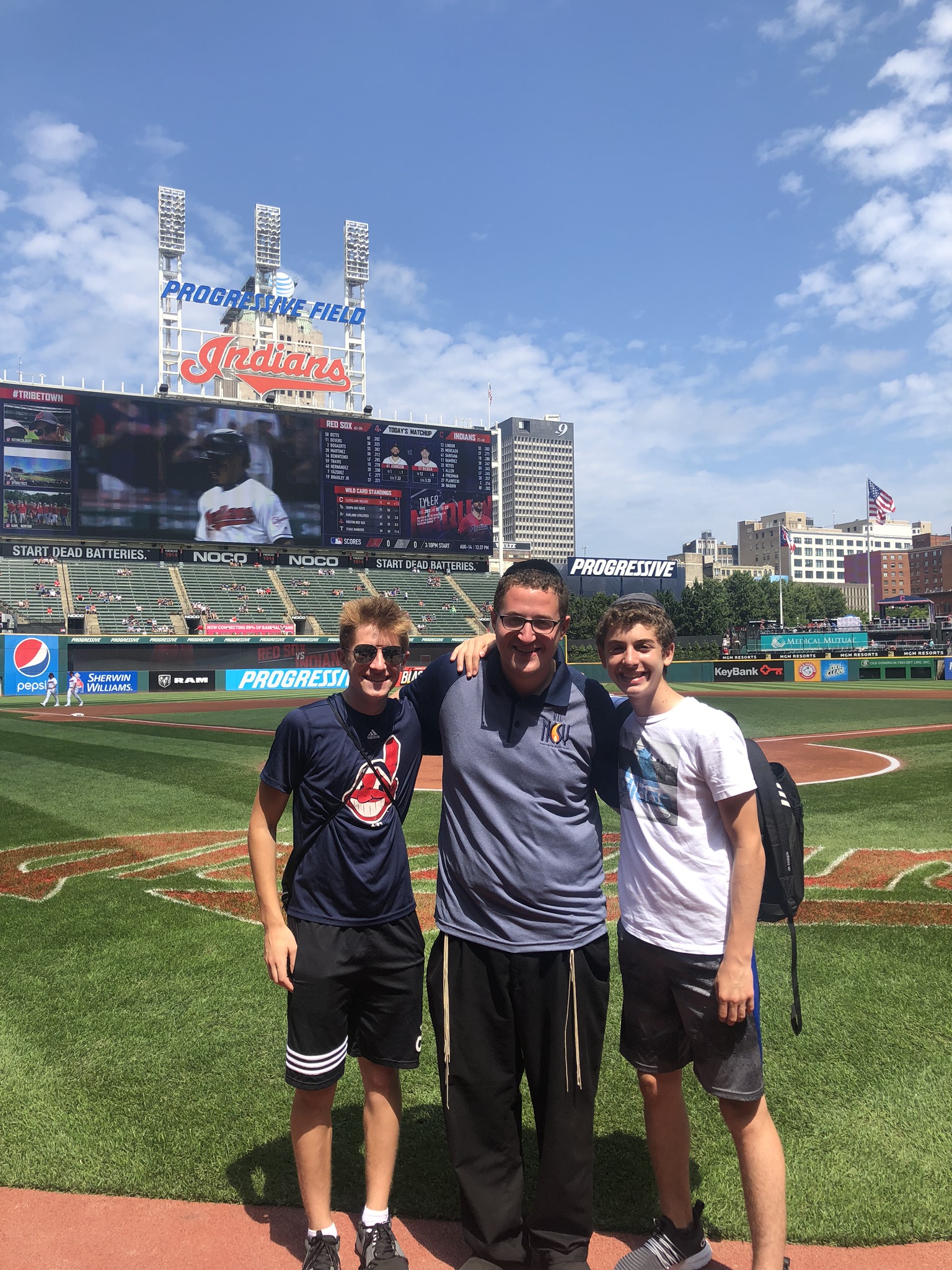 Today started off with Shacharis, featuring a d’var halacha from Rabbi Marcus, a scrumptious breakfast (waffles, bagels, and cereal), and then an exciting chabura-shiur combination. After a delicious mac and cheese lunch, we traveled to Progressive Field for an intense matchup between the Indians and the Red Sox. After the game, we headed to Dave and Busters (including unlimited soda and water!) and then The Multiplex Sports Facility for a fun afternoon of arcade games and sports leagues. When we got back to the hotel after a fun-filled day, we heard a riveting mussar schmooze from Rabbi Marcus before Davening Maariv. We can’t wait for another jam-packed day tomorrow!