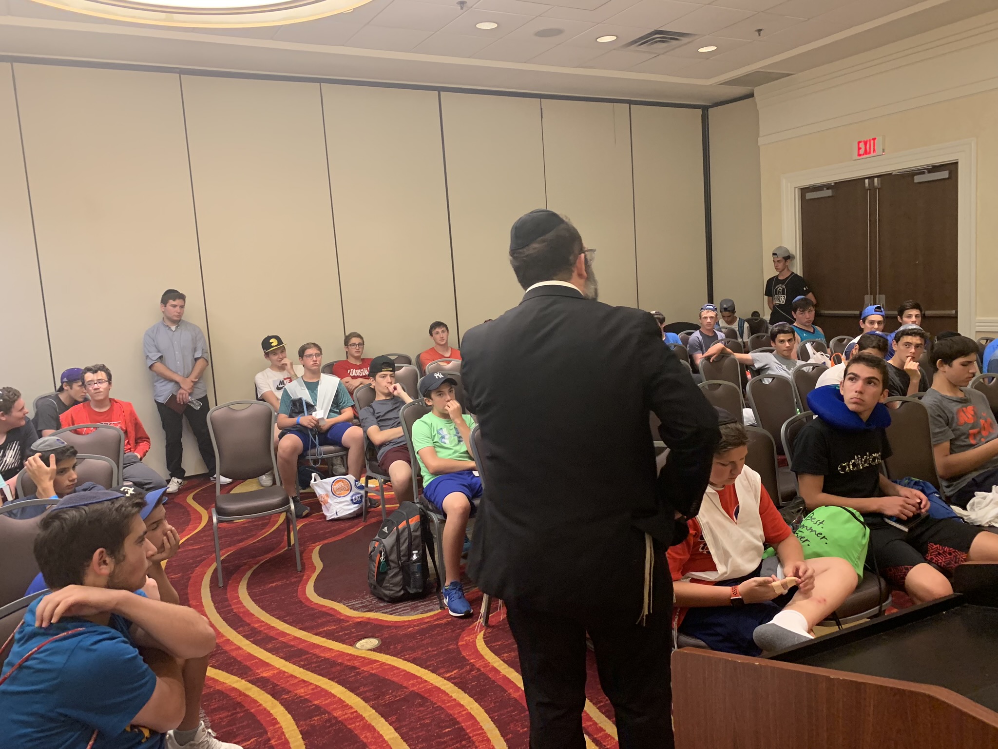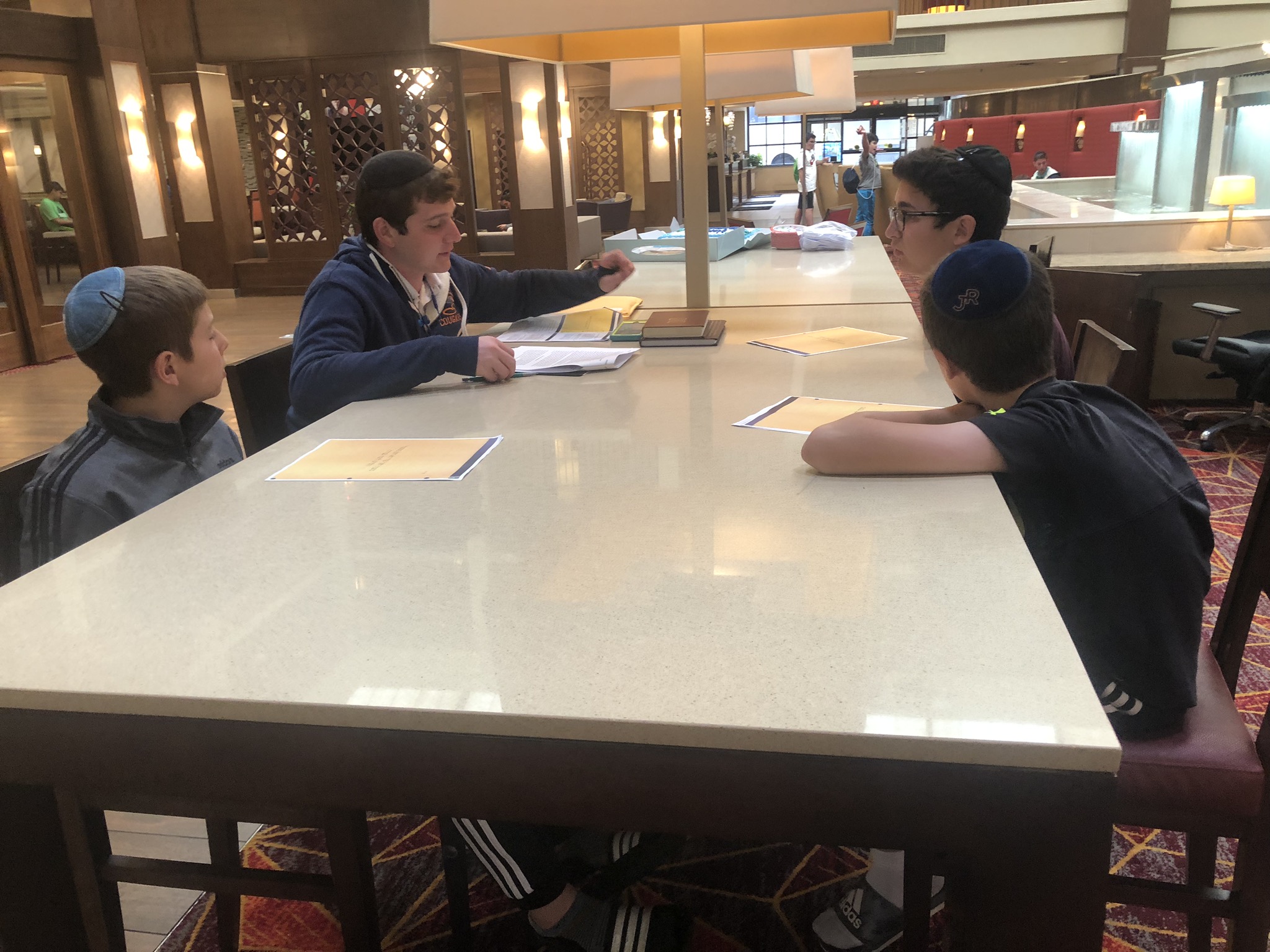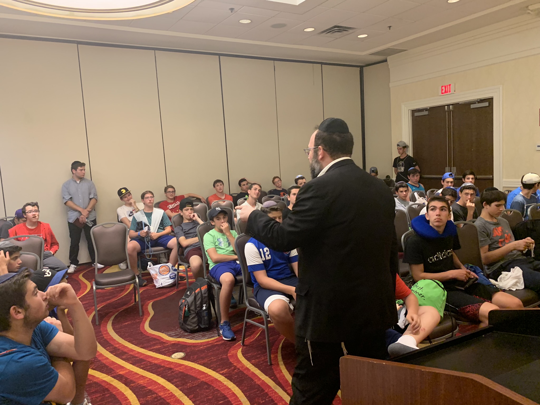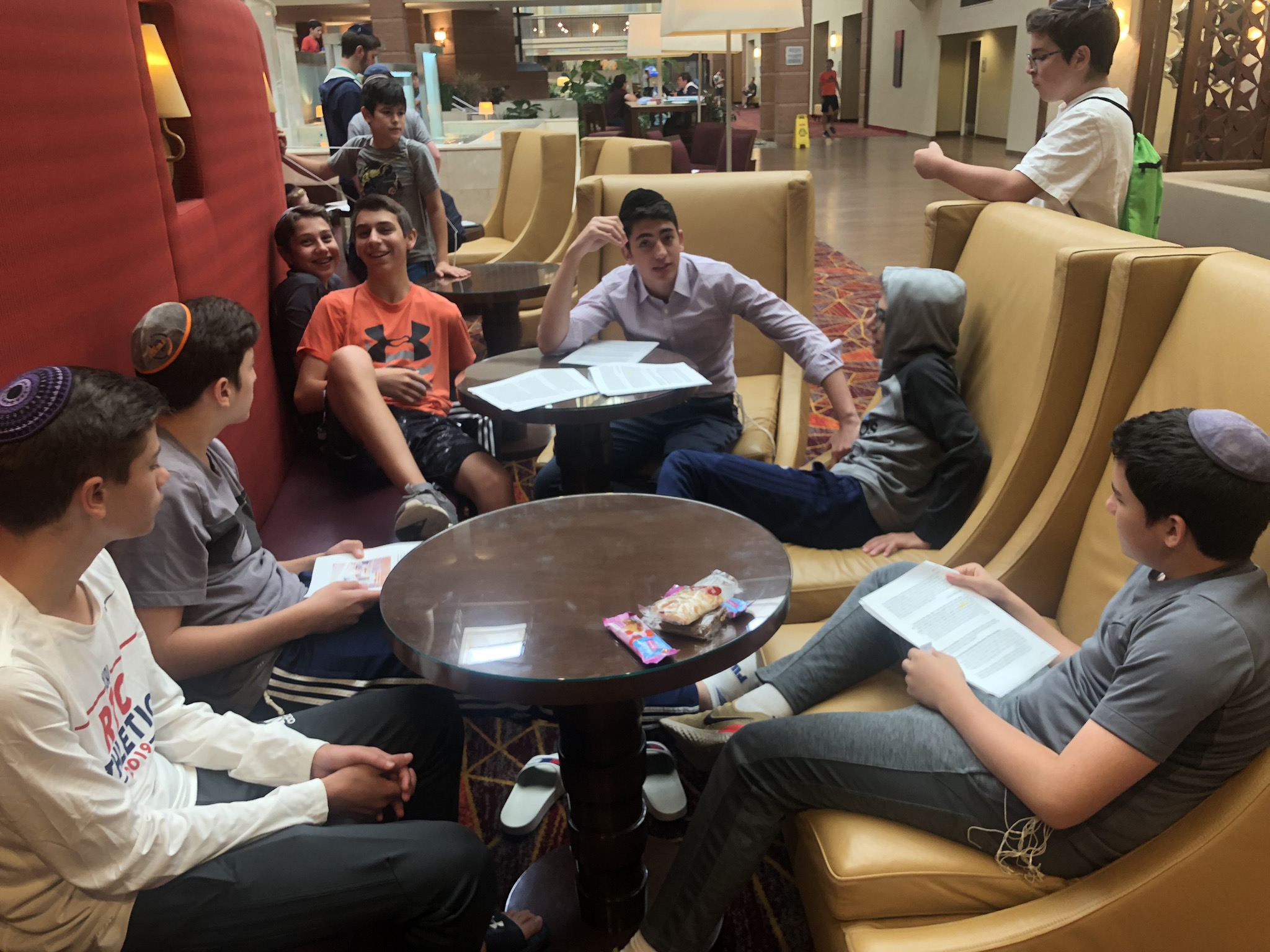 Today started off with Shacharis, featuring a d’var halacha from Rabbi Marcus, a scrumptious breakfast (waffles, bagels, and cereal), and then an exciting chabura-shiur combination. After a delicious mac and cheese lunch, we traveled to Progressive Field for an intense matchup between the Indians and the Red Sox. After the game, we headed to Dave and Busters (including unlimited soda and water!) and then The Multiplex Sports Facility for a fun afternoon of arcade games and sports leagues. When we got back to the hotel after a fun-filled day, we heard a riveting mussar schmooze from Rabbi Marcus before Davening Maariv. We can’t wait for another jam-packed day tomorrow!