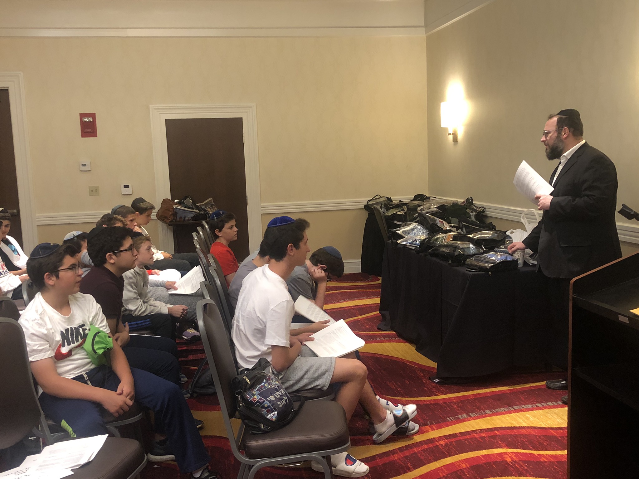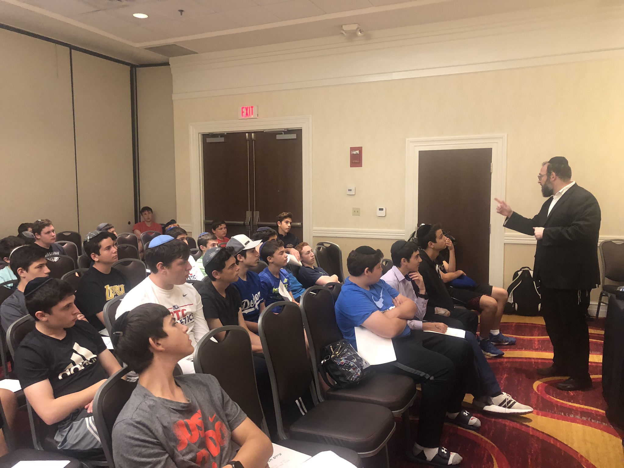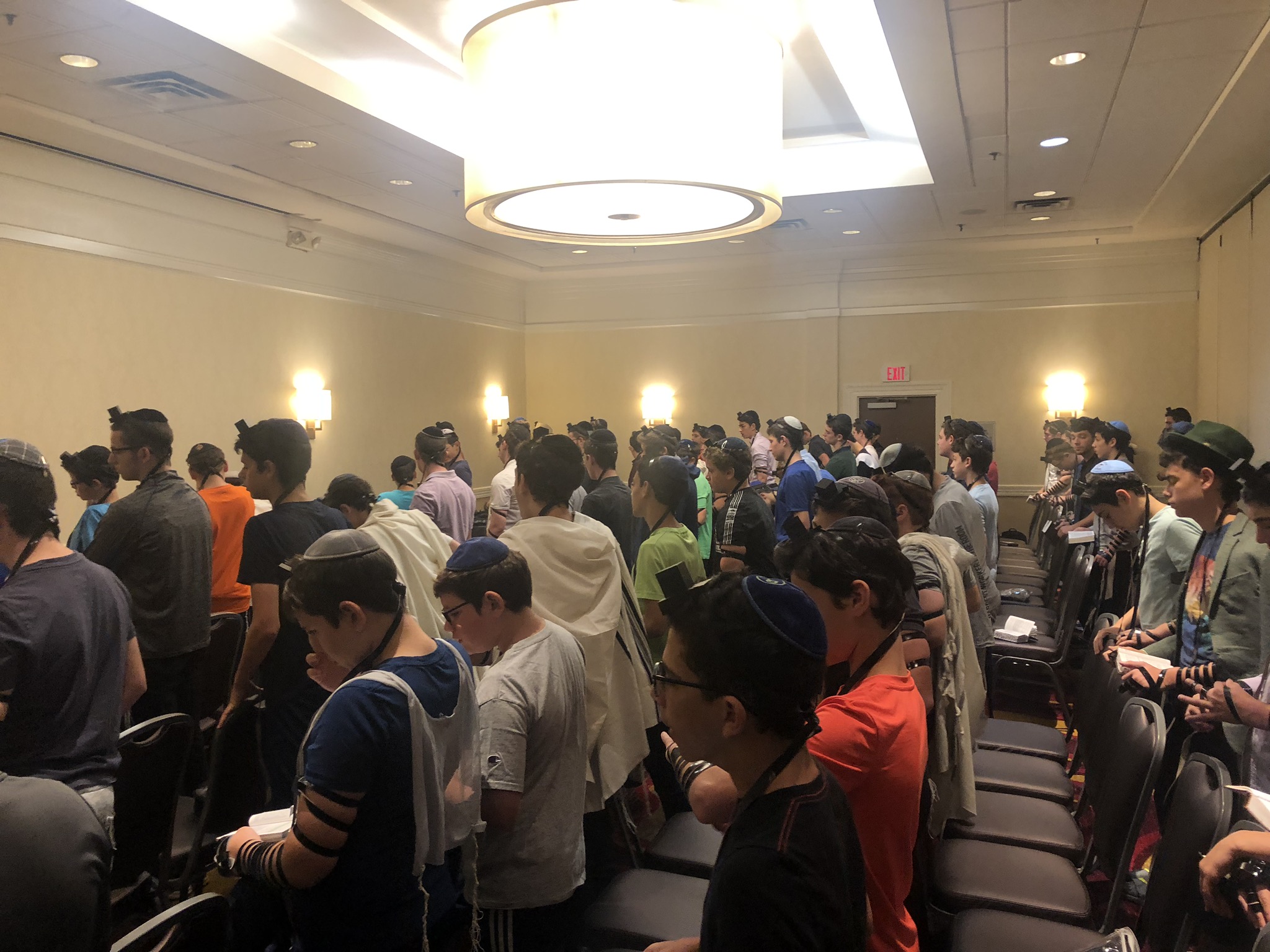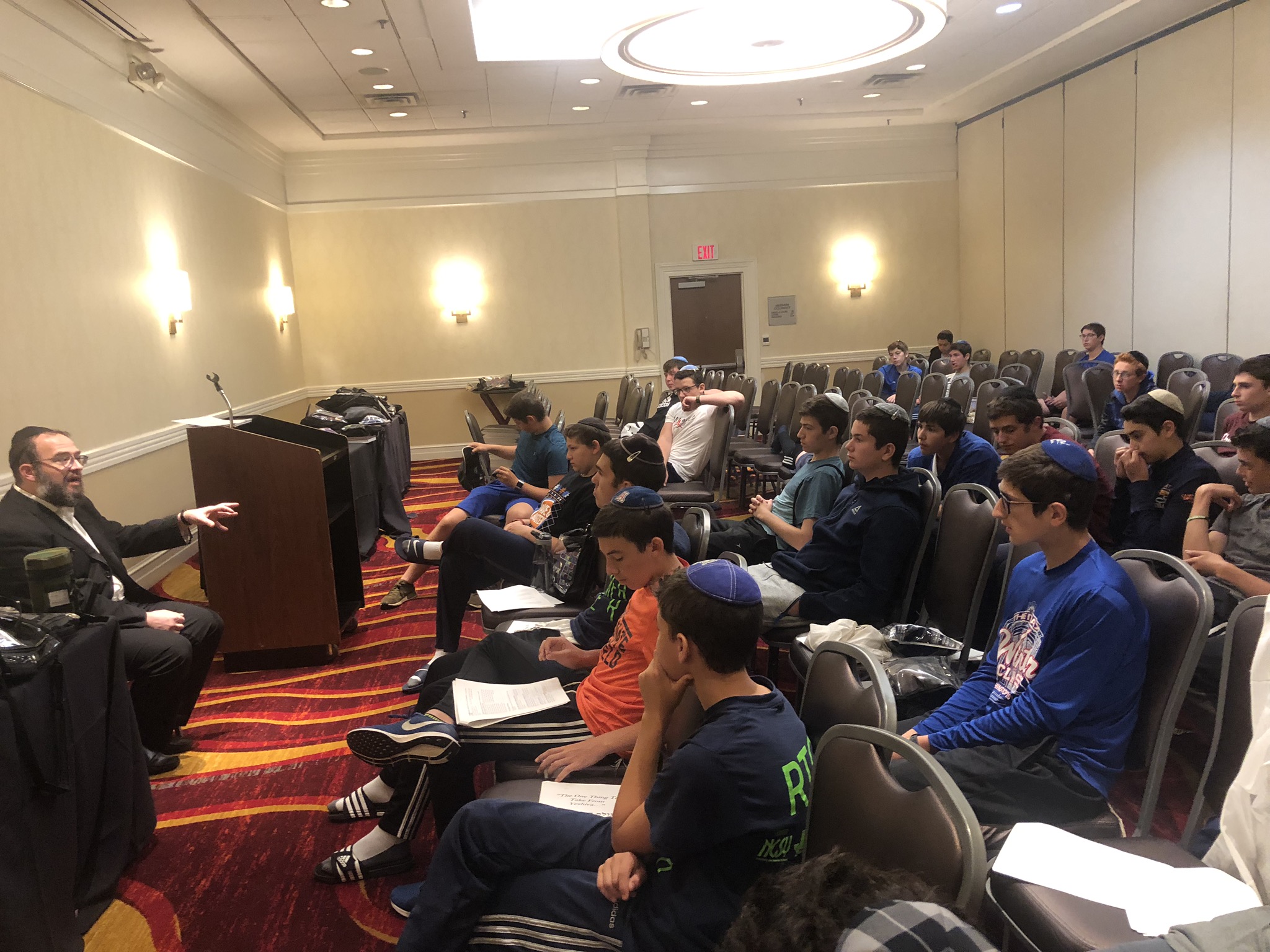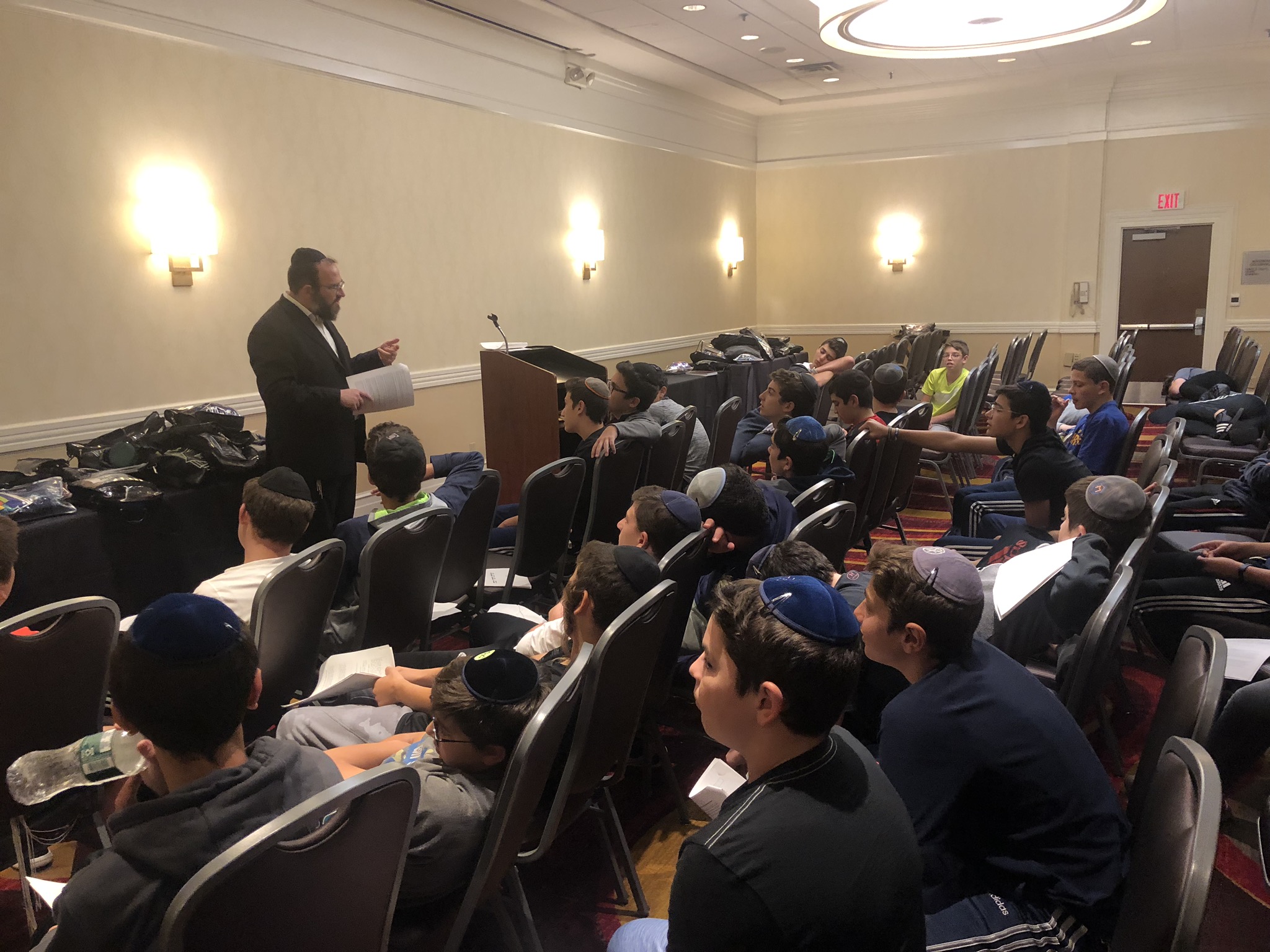 Today started off with Shacharis, featuring a d’var halacha from Rabbi Marcus, a scrumptious breakfast (waffles, bagels, and cereal), and then an exciting chabura-shiur combination. After a delicious mac and cheese lunch, we traveled to Progressive Field for an intense matchup between the Indians and the Red Sox. After the game, we headed to Dave and Busters (including unlimited soda and water!) and then The Multiplex Sports Facility for a fun afternoon of arcade games and sports leagues. When we got back to the hotel after a fun-filled day, we heard a riveting mussar schmooze from Rabbi Marcus before Davening Maariv. We can’t wait for another jam-packed day tomorrow!