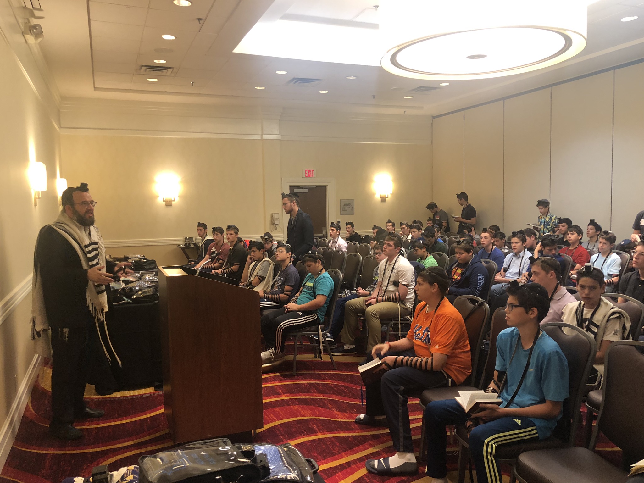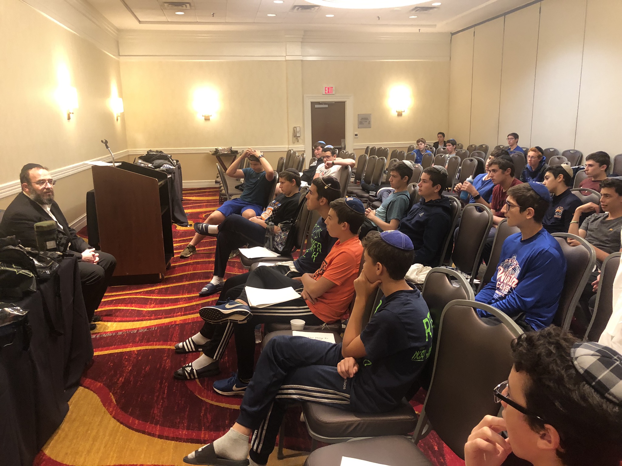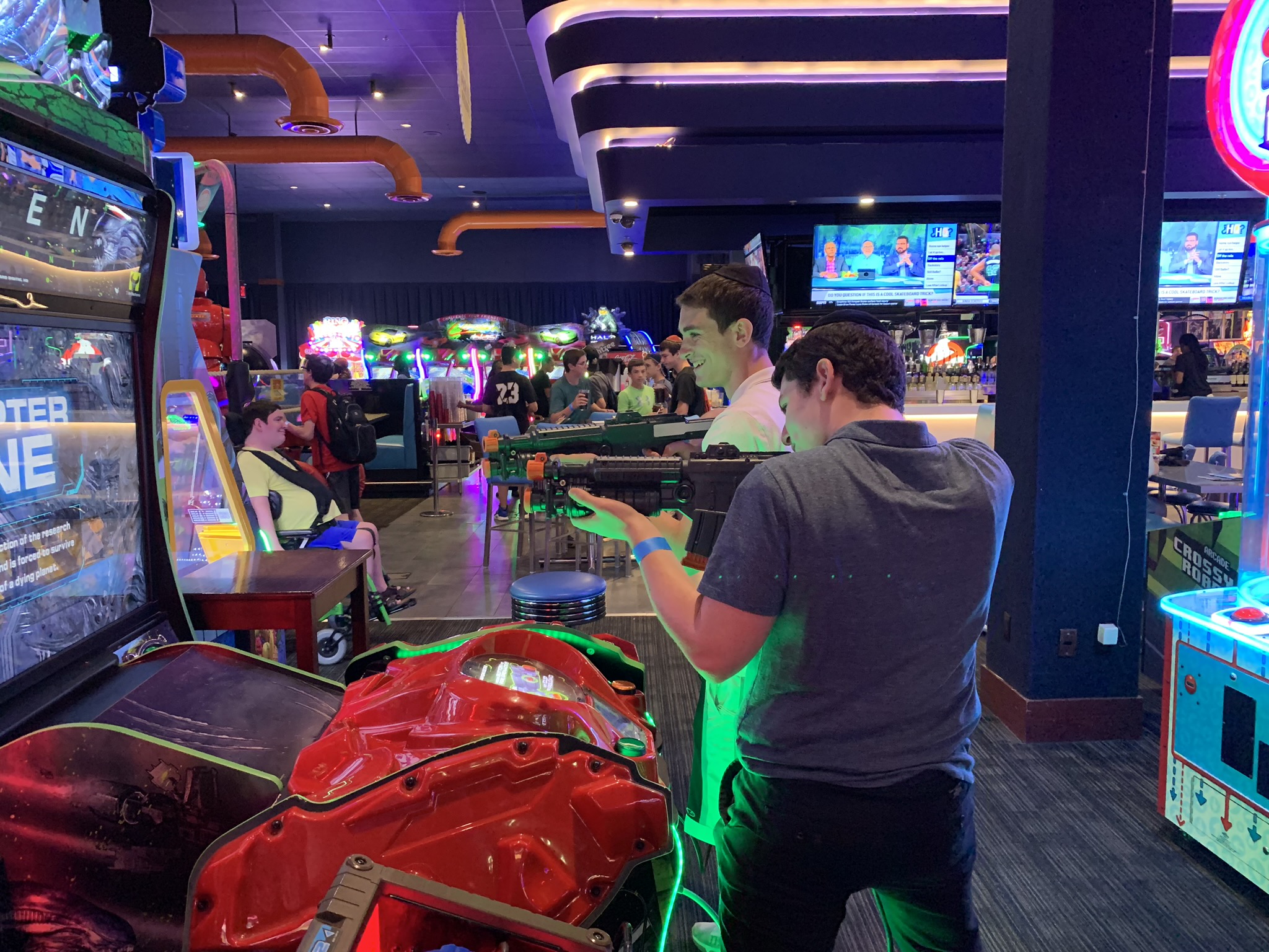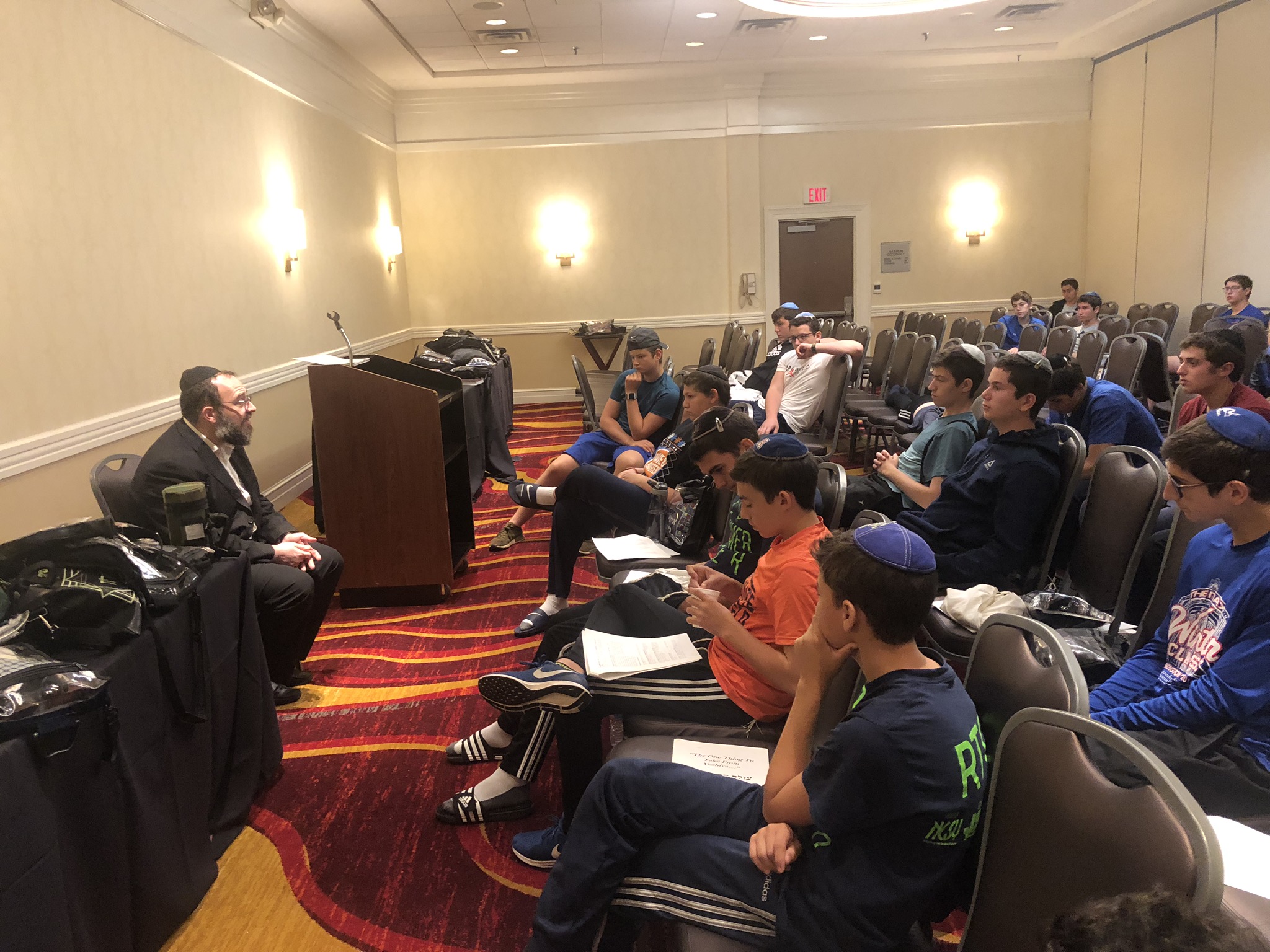 Today started off with Shacharis, featuring a d’var halacha from Rabbi Marcus, a scrumptious breakfast (waffles, bagels, and cereal), and then an exciting chabura-shiur combination. After a delicious mac and cheese lunch, we traveled to Progressive Field for an intense matchup between the Indians and the Red Sox. After the game, we headed to Dave and Busters (including unlimited soda and water!) and then The Multiplex Sports Facility for a fun afternoon of arcade games and sports leagues. When we got back to the hotel after a fun-filled day, we heard a riveting mussar schmooze from Rabbi Marcus before Davening Maariv. We can’t wait for another jam-packed day tomorrow!