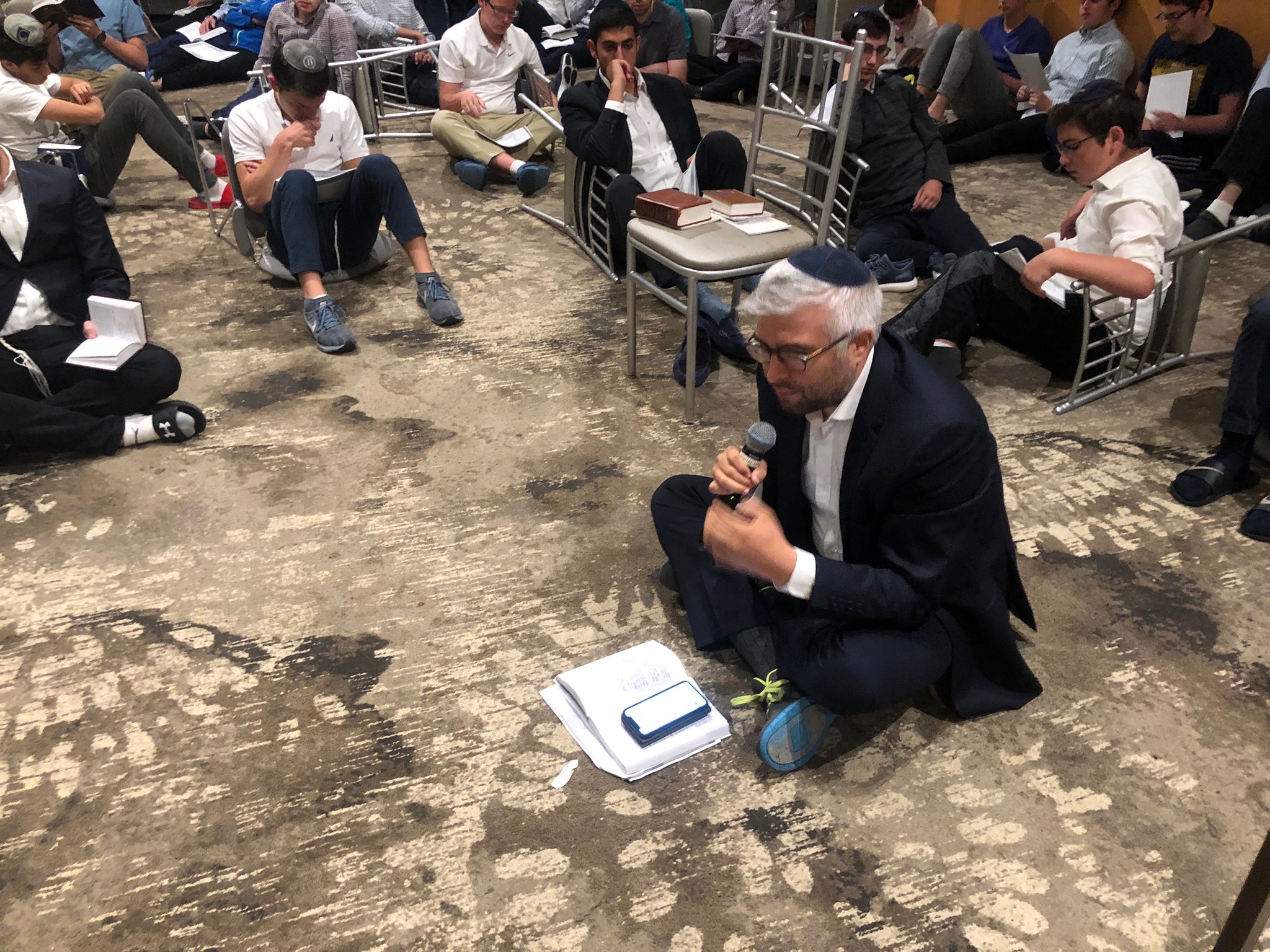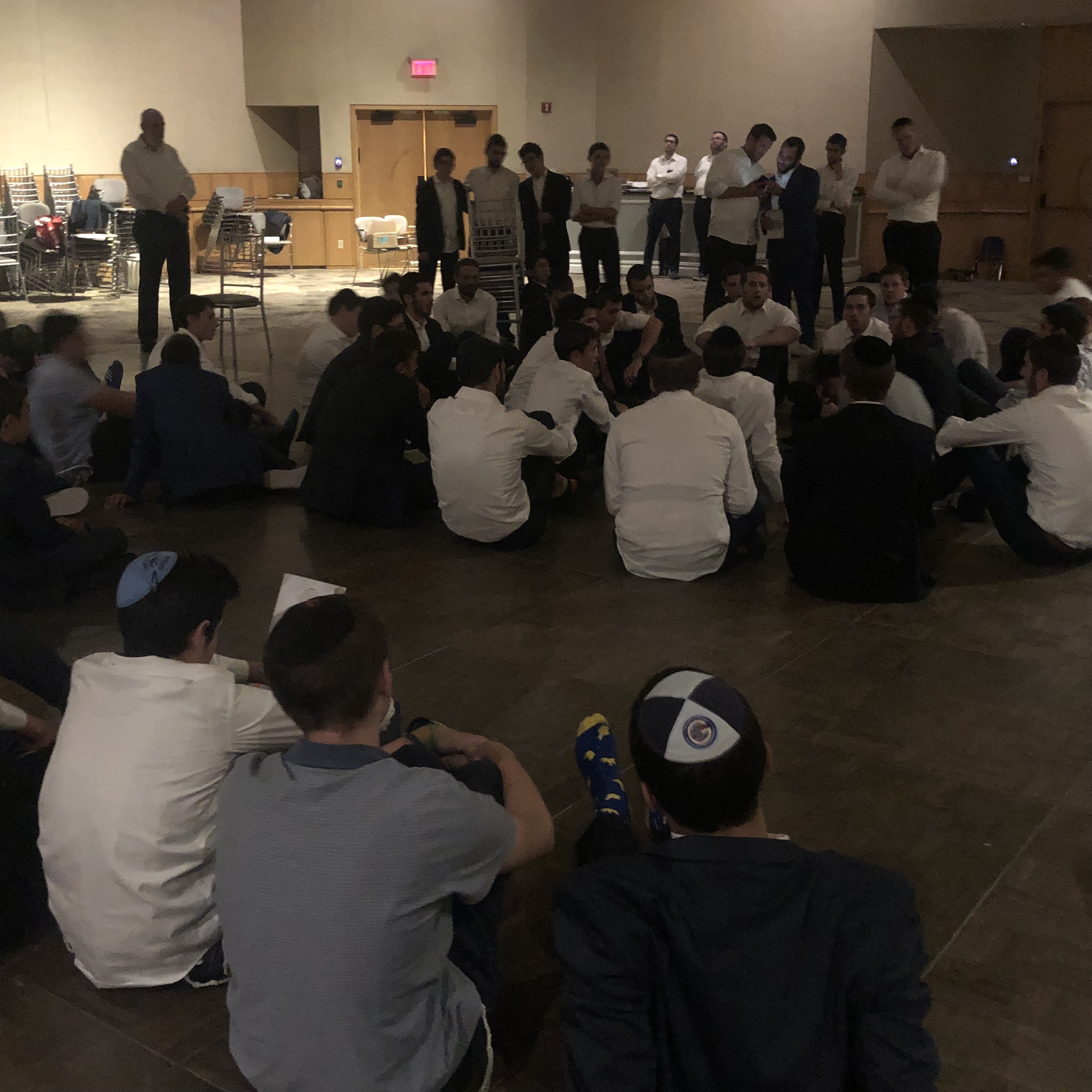 After Tisha B’Av set in, we davened Maariv, followed by a pre-Eicha schmooze from Rabbi Dr. Ari Sytner. Rabbi Sytner used his experience in the aftermath of the Pittsburgh and Poway shul shootings, coupled with his kidney donation to inspire us to go the extra mile for our fellow Jews. After Eicha, we read the first five Kinnos, and then ended off the night with a powerful kumzitz featuring words from Rav Yosef Carmel and RTC staff members.