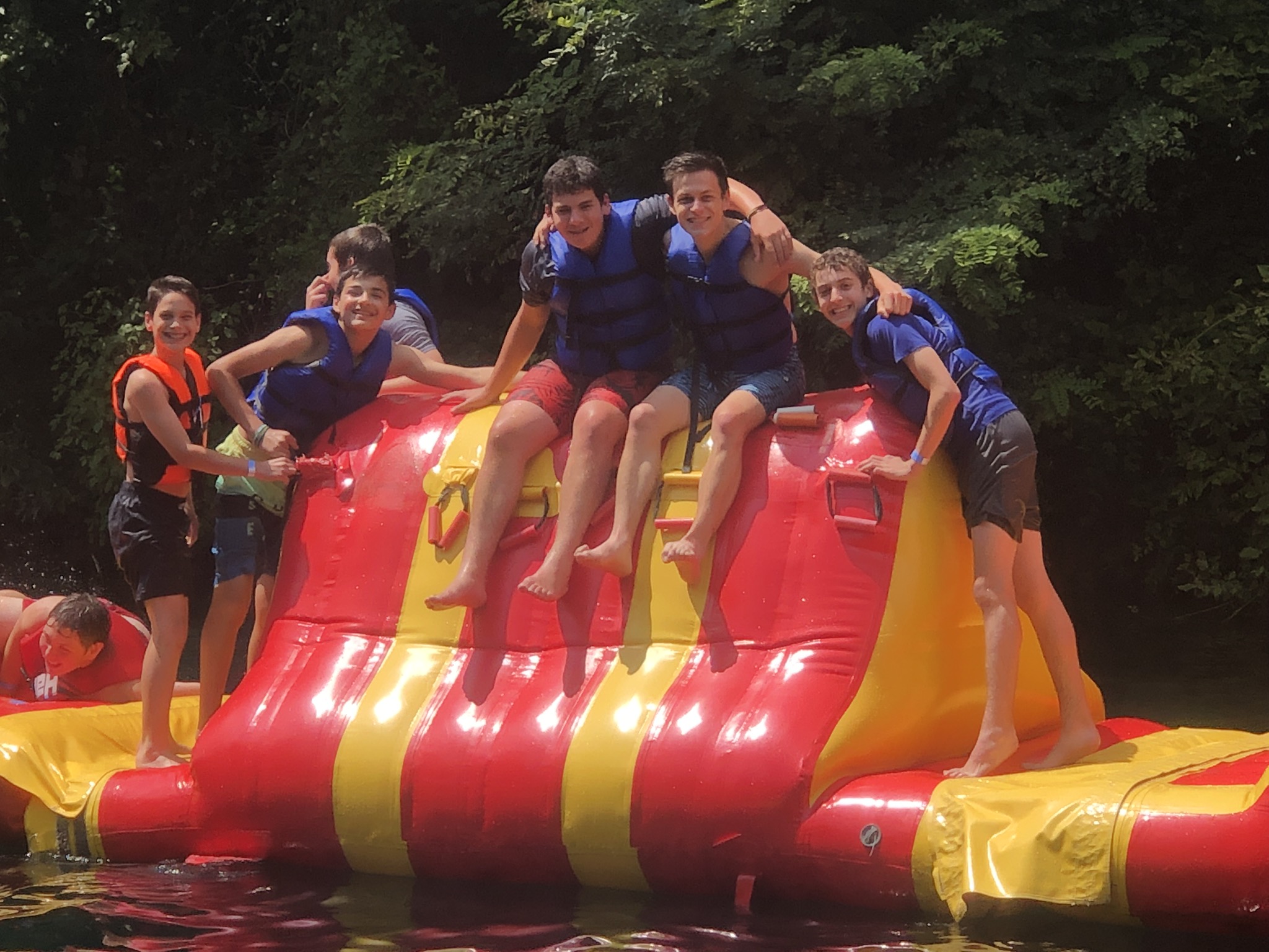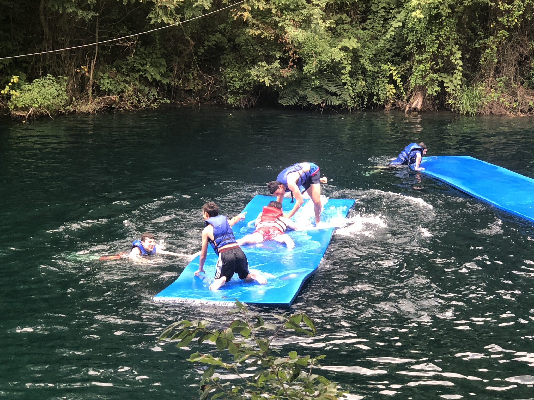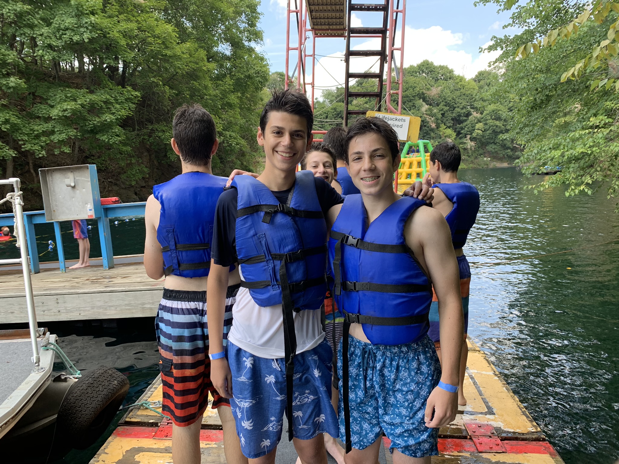 Our final week got off to a rocking start with an early Shacharis and breakfast at Keter Torah in Teaneck. We then made our way over to Guppy Gulch Aqua Park in Pennsylvania, where we ate lunch, and spent hours diving, zip lining, swimming, and wrestling on the water park on the water. Following the water park, we made our way over to a rest stop on the way to Cleveland, where we davened Mincha, ate dinner (schnitzel sandwiches and deli roll), davened Maariv, and headed to our hotel in Cleveland, Ohio. We can’t wait for Cedar Point tomorrow!