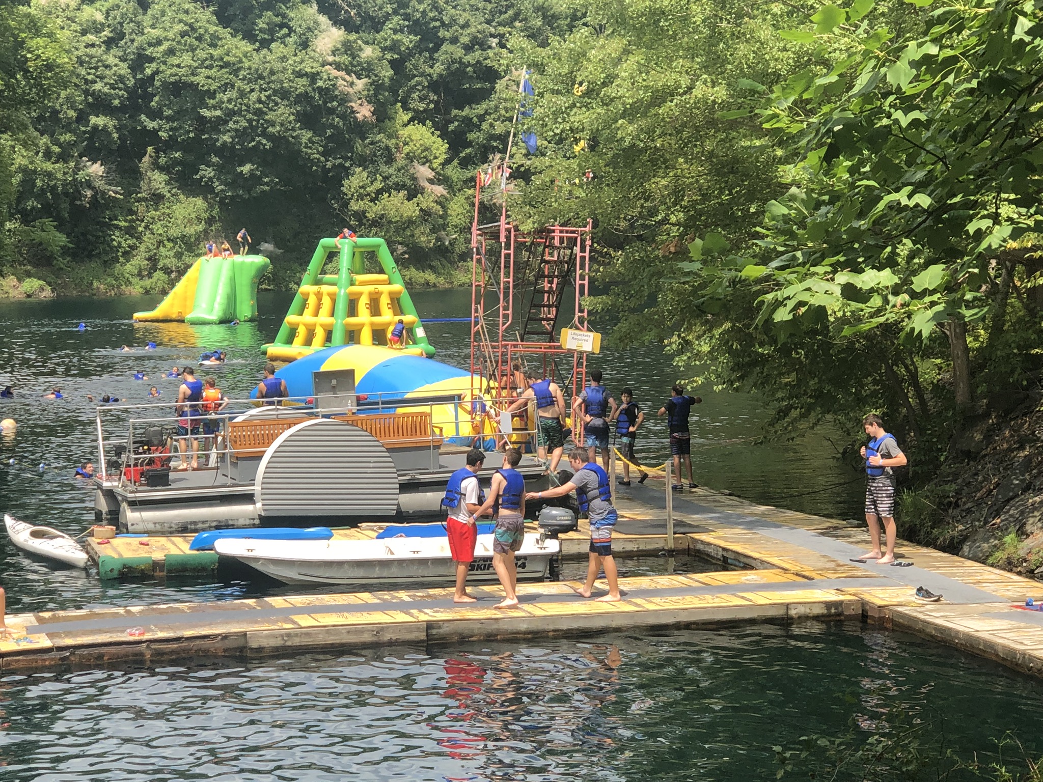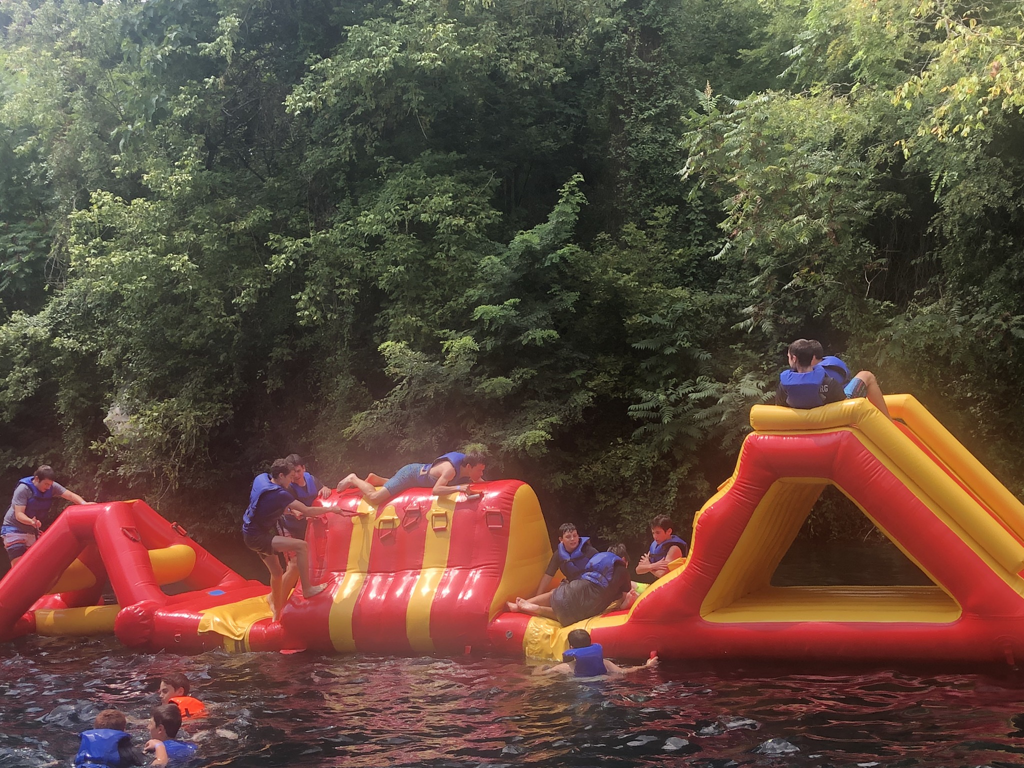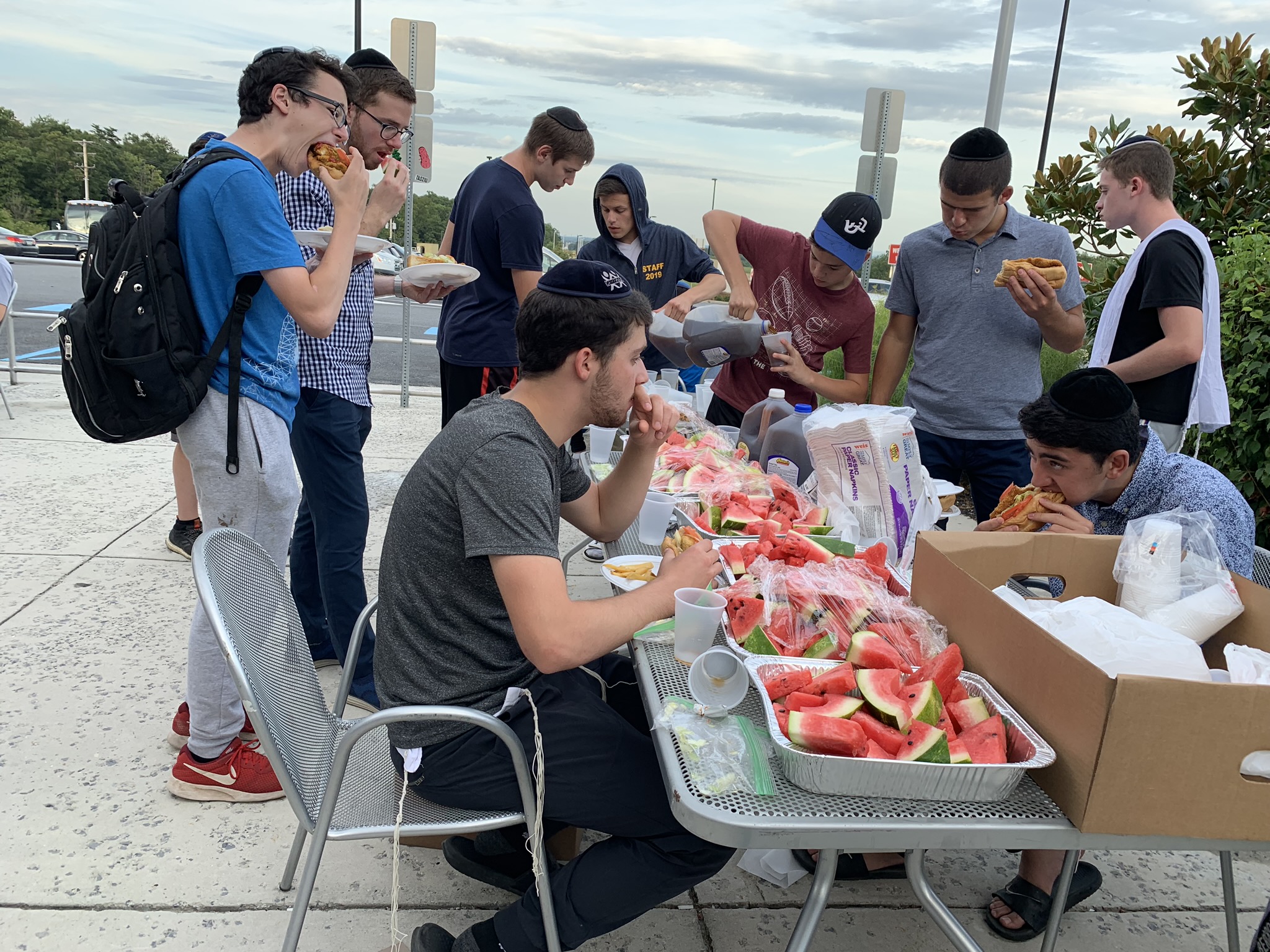 Our final week got off to a rocking start with an early Shacharis and breakfast at Keter Torah in Teaneck. We then made our way over to Guppy Gulch Aqua Park in Pennsylvania, where we ate lunch, and spent hours diving, zip lining, swimming, and wrestling on the water park on the water. Following the water park, we made our way over to a rest stop on the way to Cleveland, where we davened Mincha, ate dinner (schnitzel sandwiches and deli roll), davened Maariv, and headed to our hotel in Cleveland, Ohio. We can’t wait for Cedar Point tomorrow!