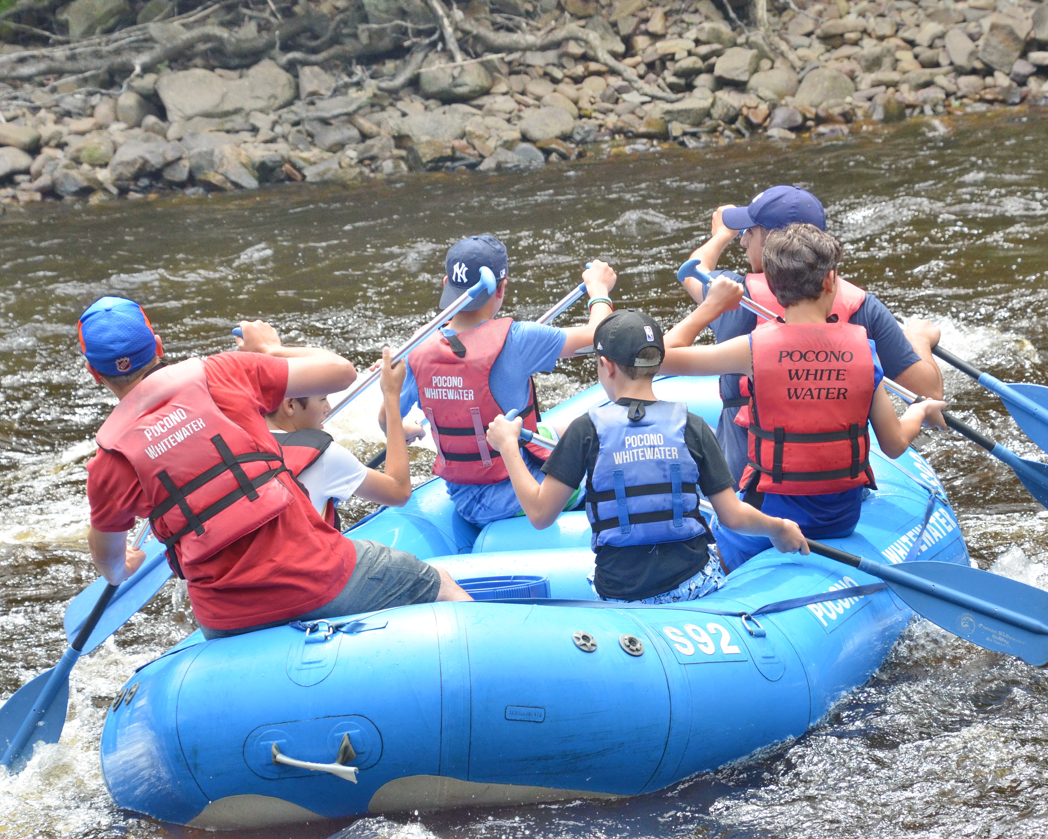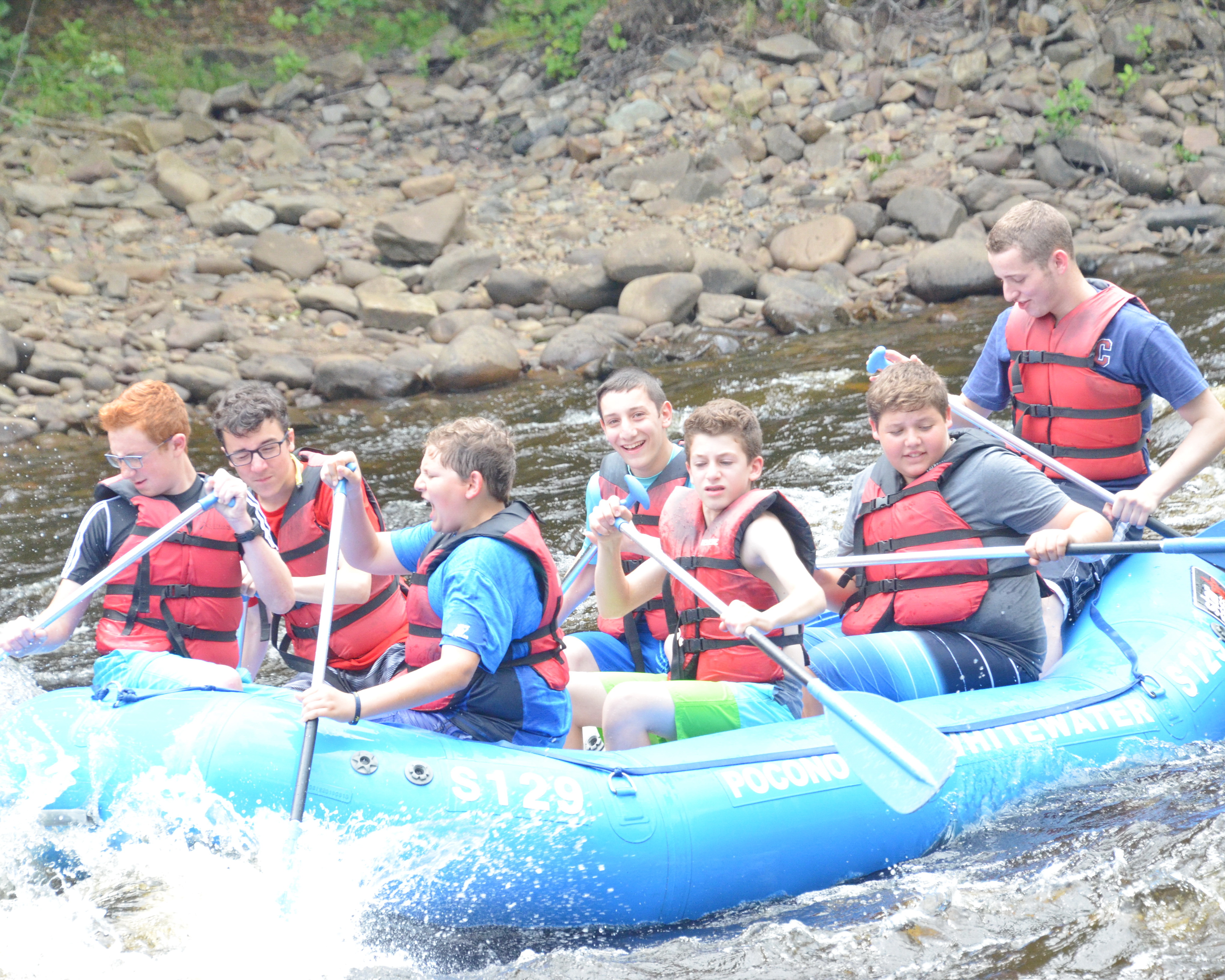 In a day of firsts for RTC, the program embarked on what is sure to be an incredibly exhilarating and growth filled adventure together. The NCSYers boarded their respective busses in the 5 Towns and Teaneck, and departed to their first of many stops this summer: Pocono White Water Rafting. Each chaburah split up in a raft with their respective madrichim, and went along the 12 mile course filled with rapids and spontaneous water fights along the way! The activity really built up a lot of camaraderie, and